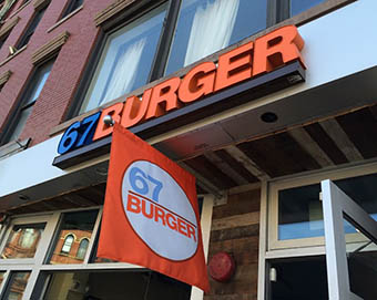67 Burger is a burger joint. It's a burger joint with heart. And finesse. It's also a place where you can get unpretentious, perfectly-cooked food, made with the best ingredients, at a reasonable price, time after time. We pride ourselves on it. 67 Burger wants you to be happy. Making you happy makes us happy. So, we make sure our menu has plenty of options. Want a burger? Easy. We offer thirteen artfully crafted styles of burger. Each one is made with grass-fed, grain-finished, all natural beef from farms who are committed to responsibly-raising their meat. Ground fresh daily and grilled to desired temp. But, maybe that's not what you want. Maybe you like designing your own burger, maybe you pride yourself on being a burger artiste. So, we have eight different kinds of cheese and 18 other toppings all at your disposal because you know how to design your perfect burger.